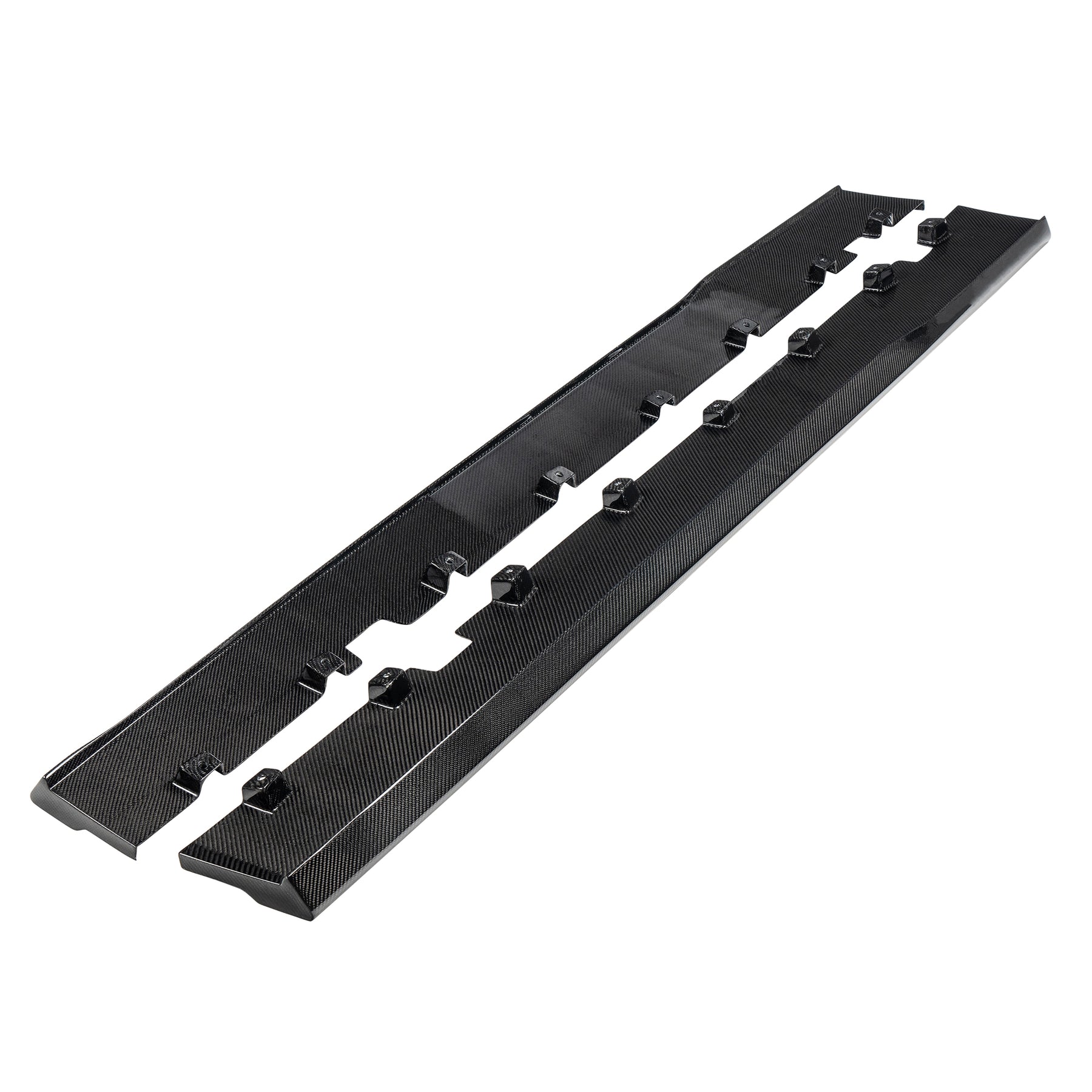 Each of our 2024+ Mustang carbon fiber side skirt extensions is made from premium carbon fiber, giving you an extended side skirt that is built with strength and integrity in mind. Our side skirt extensions will come with all of the necessary hardware to make installation quick and easy for a perfect fit every time.
